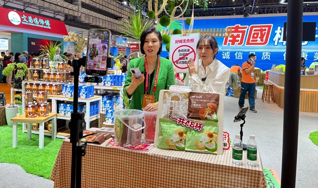 冬交会现场,南国食品旗舰店在抖音平台激情开启了一场别开生面的直播活动,带领广大粉丝“云游”南国馆,感受南国美食的魅力。在这场视觉与味觉的盛宴中,印象南国电子商务公司徐国华董事长亲自推介产品,向粉丝们展示了南国食品的多样产品,从滋养身心的黄芪党参椰子粉,到充满热带风情的可可生椰拿铁,再到香气四溢的茉莉花生椰拿铁,每一款产品都令人垂涎欲滴,让粉丝们在屏幕前就能体验到南国食品的匠心独运。