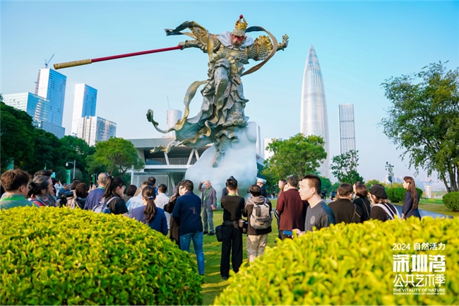 今年艺术季首次引入以知名大型IP“大圣”命名的雕塑,该作品是中国美术家协会副主席李象群2024年的新作品。李象群表示,“作品《大圣》是对中国古典文学名著《西游记》中孙悟空这一角色的独特演绎,以京戏武生亮相反手握棒的姿势显示了孙悟空的英雄气派。这件雕塑作品不仅仅是对孙悟空这一经典文学形象的再造,更是对中国传统文化的致敬,艺术家通过这一形象表达了对民族文化精神的自豪感和自信心。”