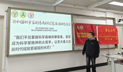 图 2硕士生控制学科第二党支部书记薛浩作“共和国科学家的东大印记”主题微党课