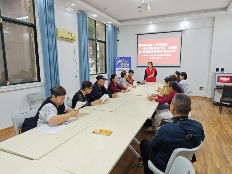 2025年4月15日是第十个全民国家安全教育日。为提高老年人防诈“免疫力”,永州市冷水滩区紫荆社区联合永州联通开展“擦亮银龄眼,识破百变骗”主题反诈宣讲活动,通过案例讲解、互动分享、上门服务等形式,为社区老年群体送上实用防骗指南。