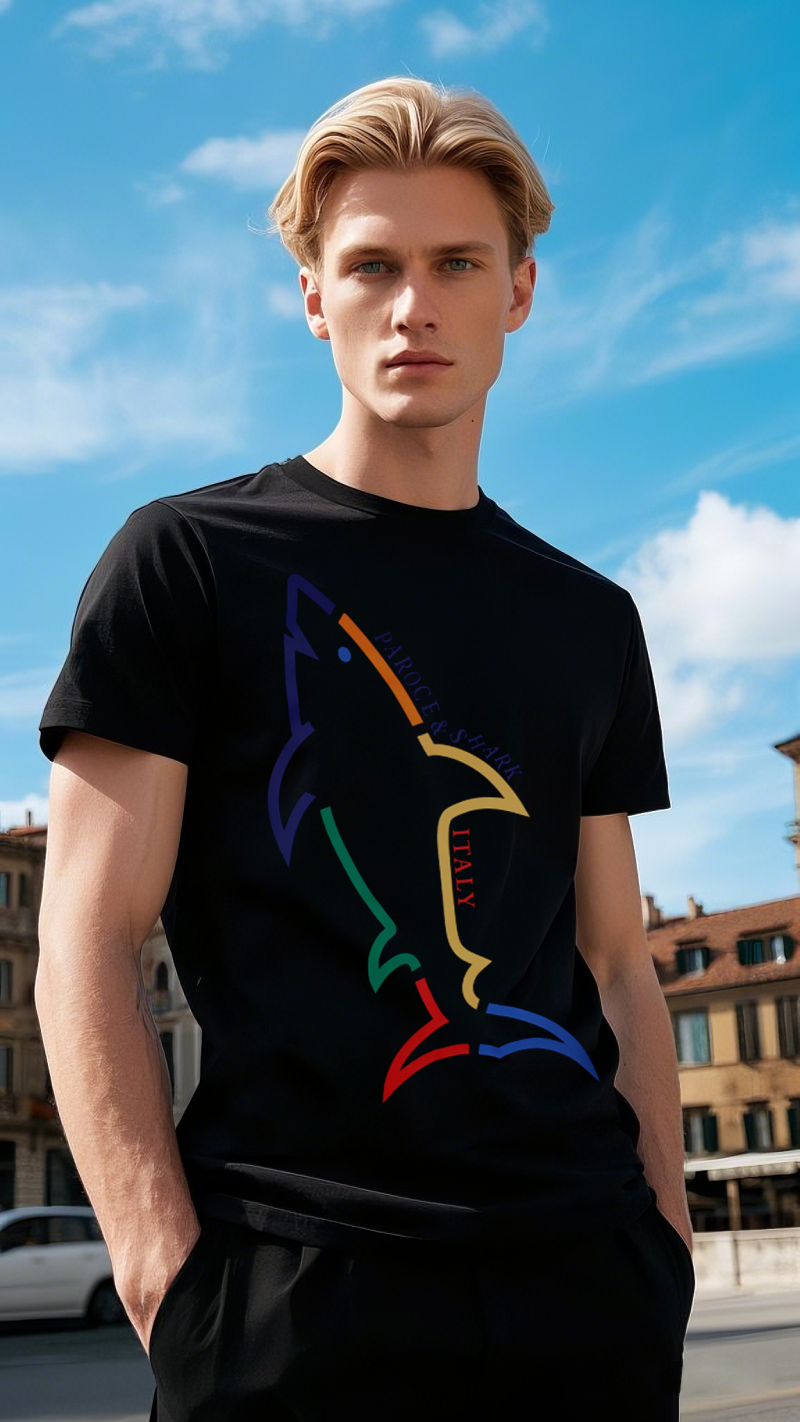 设计开发始创于1988年的保洛斯鲨鱼Paroce&Shark,2022年正式进驻中国市场为意式男装注入了一股清新之风。品牌创始人Paroce Vic以“当代经典”为设计哲学,将佛罗伦萨的匠人精神与米兰的先锋美学熔铸一体。他摒弃了传统正装的刻板印象,用解构主义手法重塑西装轮廓,将亚麻、棉麻等天然面料与现代科技纤维交织,在保留意式剪裁精髓的同时,赋予服饰更强的功能性与舒适度。