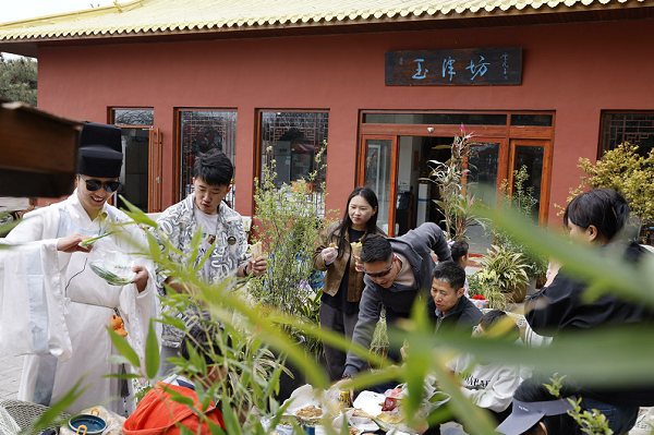 身着广袖长袍的店小二以拱手礼笑迎八方客,沂蒙煎饼、特色美食、森林市集琳琅满目。游客可在此赏国风、品春味,体验“可尝、可玩、可带走”的沉浸式文化之旅。
