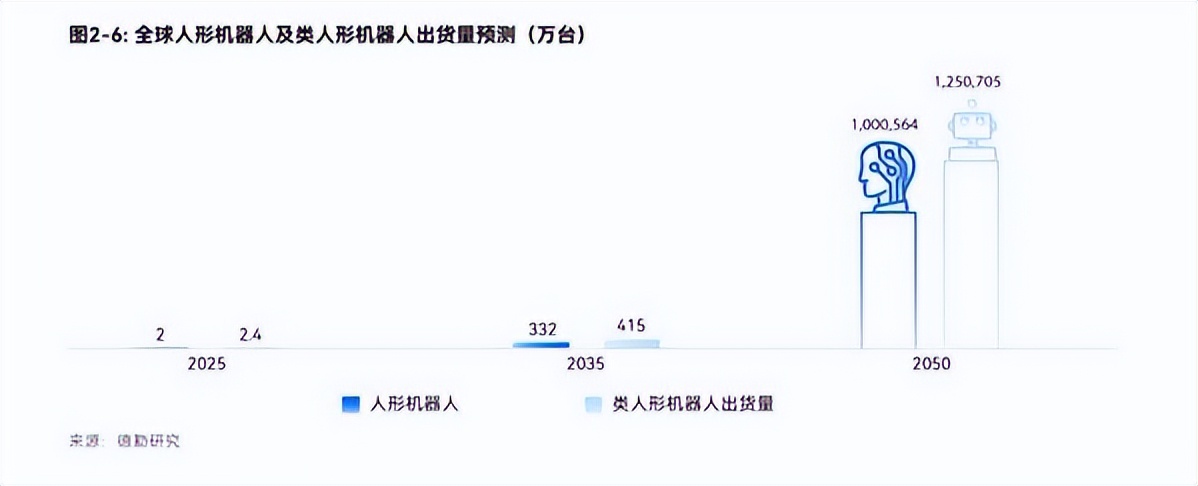 白皮书强调,人形机器人不是唯一的终极形态,机器人形态的演进并非线性进化。白皮书引述普渡机器人首创的"单位工作面积内的自由度 "创新概念指出,专用、类人形、人形三种形态有其各自适配的应用场景,共同构建起完整的通用具身机器人未来生态。根据德勤研究的测算,到2050年,全球人形机器人及类人形机器人出货量将分别达到100.05亿台和125.07亿台,其中类人形机器人将超过人形机器人的数量,撬动万亿级的市场空间。