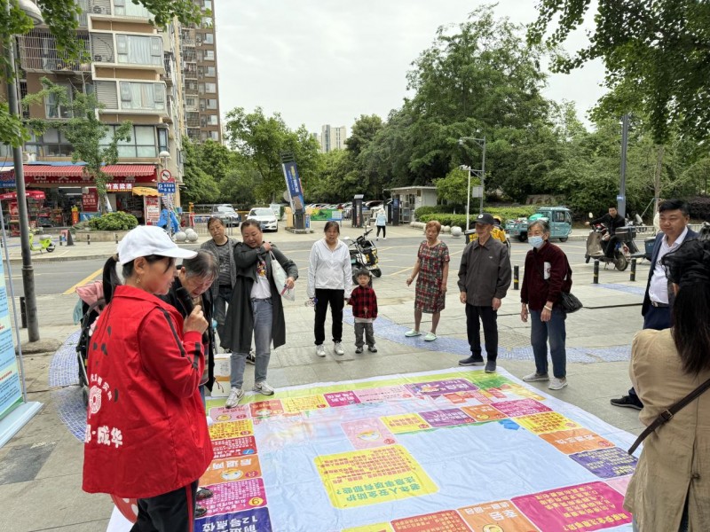 活动现场,丰富多样的活动形式让老人们沉浸其中,在欢乐的氛围中学习安全知识。在“知识宣传”区,4套宣传展架整齐排列,上面展示着各种居家安全知识及实用小技巧,内容涵盖了日常生活中的用电安全、燃气使用注意事项、防滑防摔措施等。志愿者们热情的发放宣传资料单,并耐心为大家讲解安全要点。老人们围在展架前,眼神专注,不时提出疑问,工作人员都一一进行解答。在安全趣味闯关游戏区,“真人飞行棋”游戏吸引了众多老人的参与。这个游戏涵盖了居家安全、消防安全、老年人健康知识等多方面内容,老人们化身“棋手”,在棋盘上步步为营。大家在轻松愉快的氛围中学习安全知识,掌握相应的安全和健康技巧。每当有人成功完成闯关,现场都会响起热烈的掌声,获胜者还能获得应急小手电筒作为奖励。一位参与游戏的老人激动地说:“这个活动太有意义了,让我们在玩游戏的过程中学到了很多安全知识,以后在家就能更好地保护自己了。”