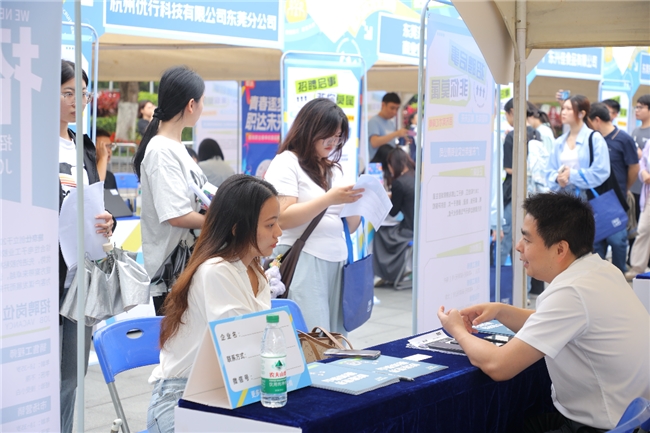 值得注意的是,青春东城的求职市集更显潮流范,吸引了中山大学、华南理工大学等高校学生参加。现场设置东城地标打卡点、职场开运上上签等互动环节,处处彰显中心城区的活跃经济、产业家底、繁华商圈、绿美生态优势,并发放“装下未来”人才礼包,展示青春东城文化名片。