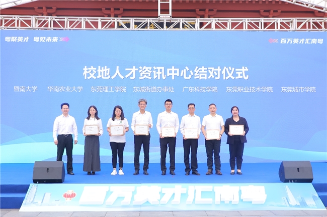 当天,东城与暨南大学、华南农业大学、东莞理工学院、东莞职业技术学院、广东科技学院、东莞城市学院共6所院校架起“校地共建”的桥梁,结对建设“校地人才资讯中心”,加强校地人才服务、企业招聘信息互通,及时为学生提供实习、就业、创业资讯。