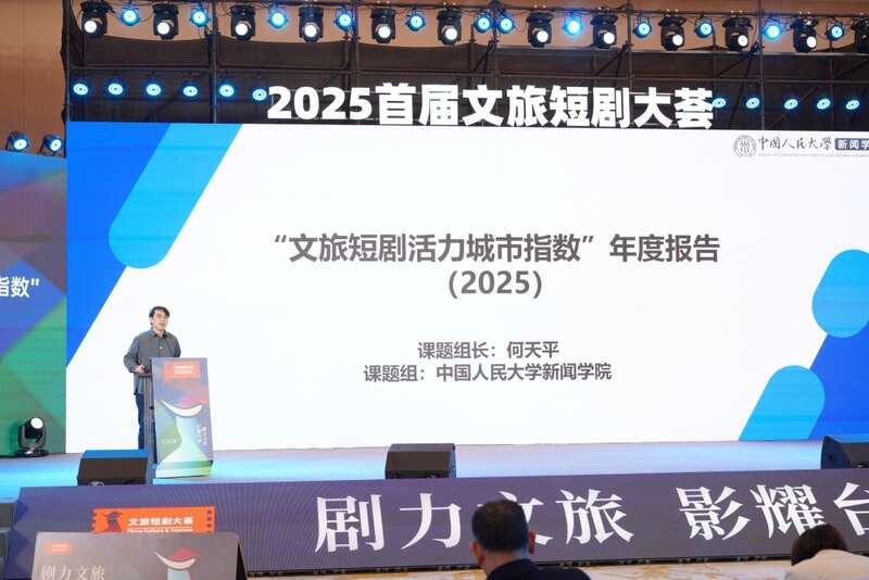 中国人民大学新闻学院副教授、“文旅短剧大荟活力城市指数”课题组主编何天平现场发布“文旅短剧活力城市指数”年度报告(2025)。北京、西安、郑州等20座城市入选总榜;敦煌、保定、重庆等城市分获最具文化价值、最具发展潜力、最具创新价值分榜;浙江临海、福建泉州等4个案例获评典型实践样本。