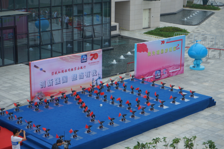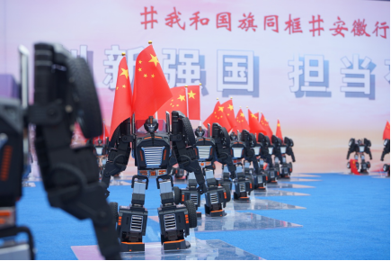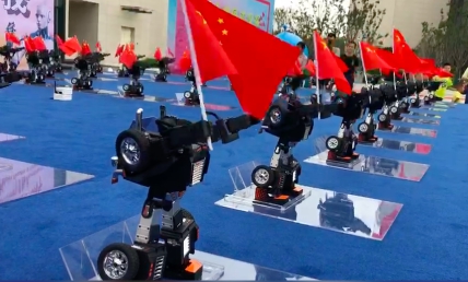表演还没结束,随着音乐的响起,手持国旗的机器人开始舞动手里的国旗,几十面国旗迎风招展,在机器人手中猎猎作响,场面震撼人心,观赏性十足。