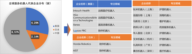 服务机器人领域,中国企业也具有较大优势,以护理机器人和药房服务机器人为主。