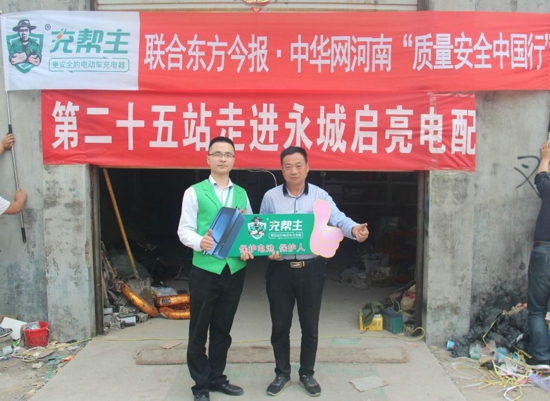 近日,由更安全的电动车充电器——充帮主电动车充电器联合全国广电系统唯一都市报、全国十大传播力都市报东方今报、猛犸新闻客户端,以及中华网·河南启动“质量安全中国行”活动走进第二十五站商丘永城启亮商贸,实地见证充帮主电动车充电器在推广当中的市场反响。