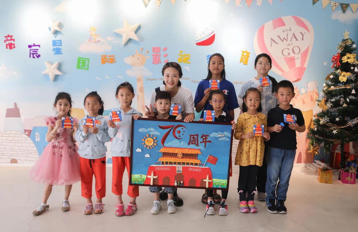 过程中,老师和孩子们互相帮助一起发挥创意和想象力,在轻松愉快的氛围中完成了天安门的制作,活动尾声以“为祖国送祝福”为内容采访了现场的小朋友们,一声声对祖国母亲的祝福回荡在教室中,最后老师和孩子们一起手捧天安门粘土作品留下了动人的瞬间。