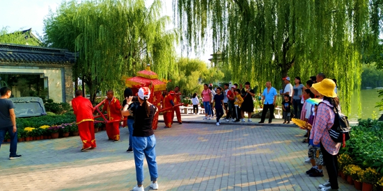 身着古装,衣袂飘逸,风雅一身穿过亭台楼阁,便好似回到了千百年前,你就是集美貌与才华于一身的李清照,漫步在翰园湖畔,欣赏着叠翠流金的金秋美景,于仰圣山上回眸一笑,将古典之美展现得淋漓尽致。