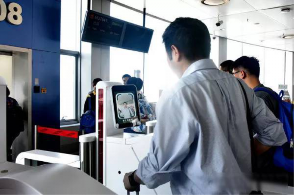 ▲旅客通过“自助登机门”进行自助“刷脸”登机