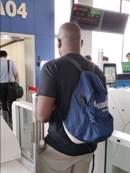 ▲国际友人通过自助登机门进行自助“刷脸”登机
