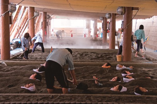 砂蒸温泉算得上是鹿儿岛的发明。如果你想体验最正宗的砂蒸温泉,那鹿儿岛是最佳选择了。由于丰富的地热资源,鹿儿岛海边沙滩的底下都会有温泉流过,沙粒被加热到40-50摄氏度。踩上去,会有明显的热感。50度的温度放在温泉中,人肯定是无法承受的,但由于沙粒中有空气的存在,能够起到一定的隔热效果。合适的温度,加上沙粒本身的压力,能迅速驱散疲劳、湿气,改善血液循环。保健作用能够达到普通温泉的3到4倍之多。