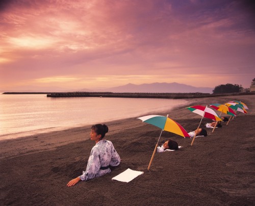 早在300年前,鹿儿岛指宿人就开始穿着浴衣躺在沙子里治疗神经痛、寒症、腰痛、风湿等。你在一些日剧里可能也看到过,有人把自己像一个土豆一样埋在沙滩里。看起来有些搞笑,但那真是当地人的日常生活。甚至很多爱狗如命的日本人,经常也会把患病的小狗带来进行砂蒸治病。