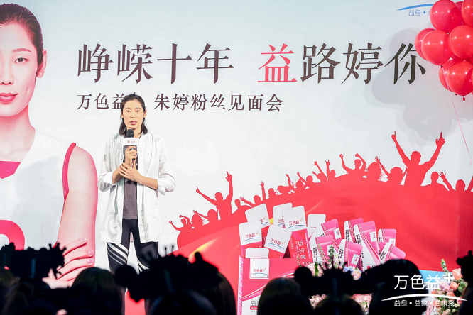 (万色益+品牌代言人、中国女排国家队队长朱婷发言)