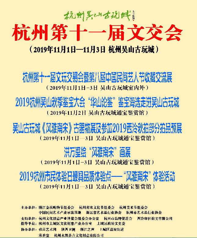 推荐理由:艺术爱好者聚集圣地,来自海内外上千参展商带来几十万件古玩艺术品、西泠十五周年秋拍征集的部分拍品预展、南宋文化节《风雅南宋》主题古器物都将集结展出。