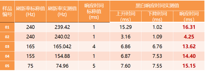 《报告》中,“电子竞技显示器关键参数测评结果”如下: