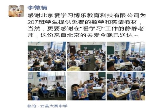 “对我们老师而言,爱学习的教材不仅能帮助我们更好地备课,也让我们与国内先进的教学内容产生了深度连接,感谢爱学习对山区学生的关注。”