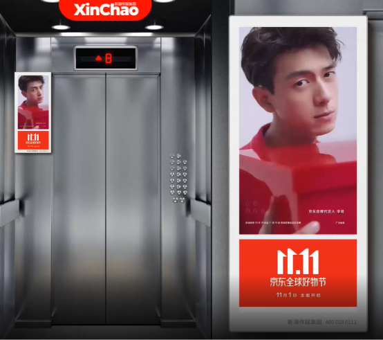 李现代言的京东11.11品牌广告刷屏新潮电梯智慧屏。坚频呈现的内容更有沉浸感,充分满足“Z世代”用户移动化、社交化和场景化的需求,创造了电梯版“抖音”效果,助力品牌传播。