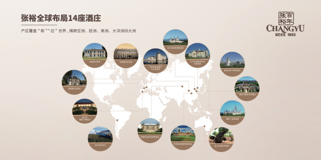 2002年,张裕在中国率先引入“酒庄”概念,在烟台、辽宁、北京、宁夏、陕西、新疆六大优质产区建成了8大酒庄。此外,张裕还加速全球布局,陆续在法国、西班牙、智利、澳大利亚收购6座酒庄,目前张裕在全球已布局14大酒庄,21间工厂,1座国际葡萄酒城,拥有葡萄园25万亩。