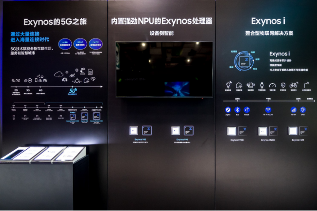 在半导体展区,三星展出了为高端智能手机、小型穿戴设备和汽车电子应用提供强力支持的Exynos系列芯片,包括5G时代核心代表作Exynos 9825处理器、Exynos 5100调制解调器、Exynos 980处理器。其中,Exynos 5100是业界首款支持5G NR的多模式调制解调器,Exynos 980将5G通信调制解调器与高性能移动AP(Application Processor)合二为一,在极大提高用电效率的同时,减少部件所占体积,从而方便移动设备的设计。同时,三星也展出了手机图像传感器产品,例如ISOCELL Bright HMX,该产品像素达1亿8百万,首次打破了手机图像传感器亿级像素壁垒。
