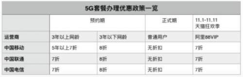 目前,国内三大运营商均已上线5G套餐资费,官方定价为128元/月起。好消息是,11月1日起,大家上天猫即可在线办理5G套餐, 88VIP会员更可享受月套餐7折优惠,最低90元/月起,目测为全网最低。