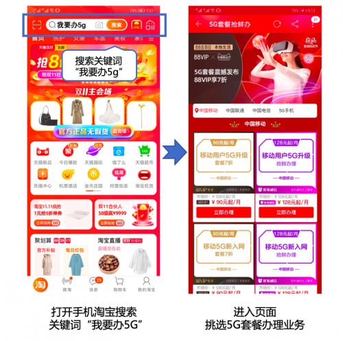 最近,在手机淘宝上搜索“我要办5G”和在支付宝充值中心办5G成为了很多网民追赶5G时髦的首选,第一批在此申请5G办理的用户,为何要选择办理最新的5G业务,又为何选择上天猫办理,这其中颇有渊源。