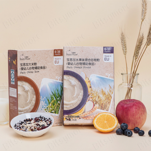 宝思加营养米粉——宝思加米粉由欧洲原装进口,以天然谷物为原料,采用CHE二次水解工艺,富含维生素、钙、铁、锌、碘等,为宝贝补充多种营养元素。