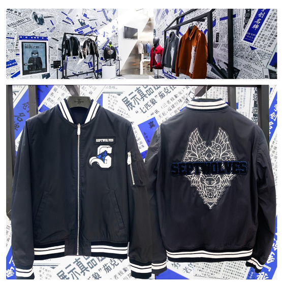 一直以来,七匹狼都专注于茄克产品的迭代创新,使其成为了风靡时尚圈的核心单品。此次,七匹狼除了在现场展出了历代经典茄克以外,还特别设计了一款“艺博会定制版茄克”。这款经典狼文化茄克选取了最具品牌特征的棒球领茄克为原型,配合本次艺术展的艺术主题,以品牌DNA元素“狼”为原型,用民族图腾的表现手法,叠加多种现代工艺,得以成就更具时尚传承经典之作。