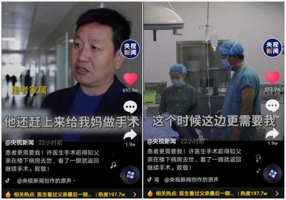因为短视频,我们看到了更多的感动瞬间,更多德艺双馨的医生,更多人间大爱。这些视频的传播,感染和影响了更多的人,形成正向循环。
