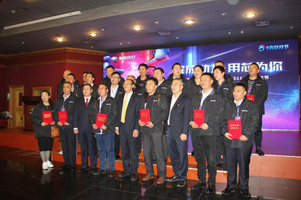 (一汽解放发动机事业部总经理助理张振锋为311线上秒杀活动获奖用户颁奖)