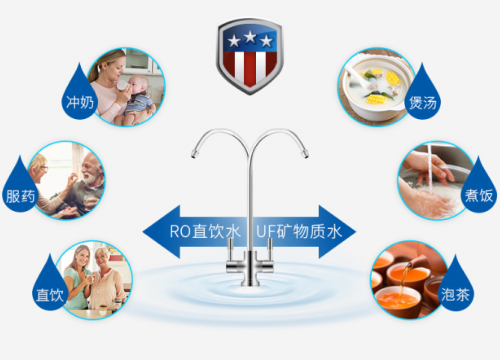 针对用户的迫切需求,备受瞩目的美国科乐泽推出了双出水净水器,用户可自由选用矿物质水或者是直饮水使用。矿物质水经高精度超滤膜净化后,有效过滤水中细菌杂质,可以用来清洗果蔬、及煮饭煲汤使用等;而直饮水经过美国反渗透技术净化后,有效过滤去除水中杂质、病毒、重金属及异味等,过滤得到纯水,达到真正直饮的标准,可用于直饮、冲奶等,满足老幼多种饮水需求。矿物质水煮饭煲汤,纯水直饮,消费者只需花一台净水机的钱,就能满足纯水、净水的双重饮用水需求,一台顶两台,节水又省钱。