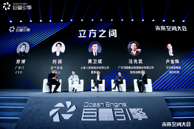 在未来空间大会的下午场,巨量引擎全国直营公司总经理涂晴、润米咨询创始人刘润对家居行业营销的思路与方式上作出了近一步的分析。广告门CEO劳博也作为特邀嘉宾,主持了现场圆桌对话,围绕家居行业的商业新模式展开了分析与讨论。