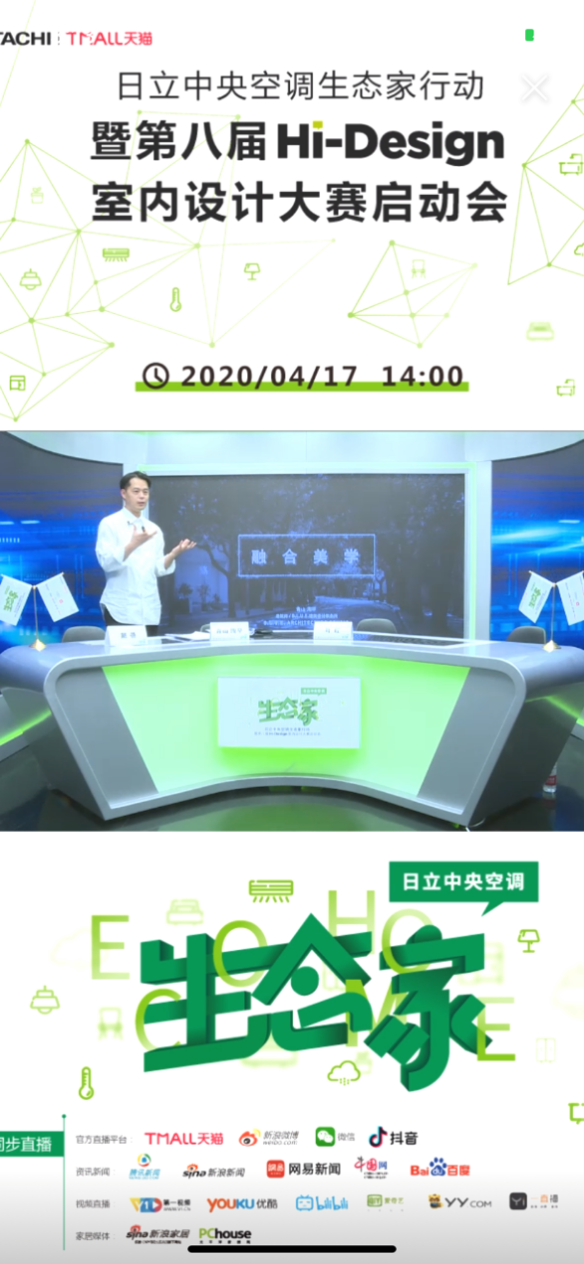4月17日,日立中央空调携手CIID、装饰企业、家居媒体、金牌设计师,在日立天猫旗舰店成功举办一场北京与青岛双城连线直播——日立中央空调“生态家”行动暨第八届Hi-Design室内设计大赛启动会,旨在以科技为引擎,聚行业之力赋能设计,共同构建更清洁、更舒适、更智能的生态家。