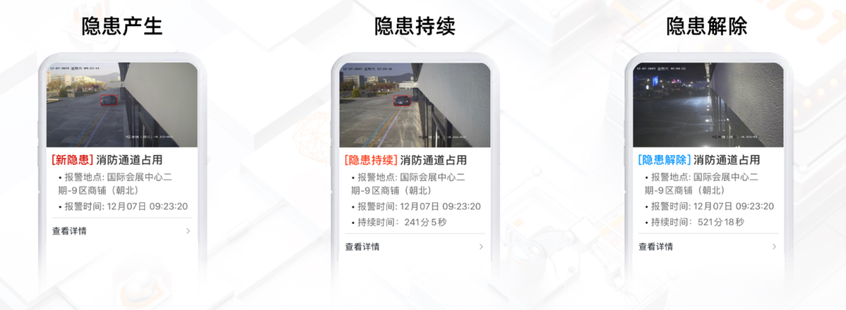传统巡检和监控方式存在很多盲区,比如隐患何时产生、持续了多长时间、什么时候问题解决了等等,而现在通过消控宝联动的钉钉AI智能机器人助手,消防隐患全过程感知,隐患产生、持续、解除全过程记录,第一时间掌握隐患情况。一旦发生消防隐患事件,可实时查看现场情况,便于及时调度和响应。
