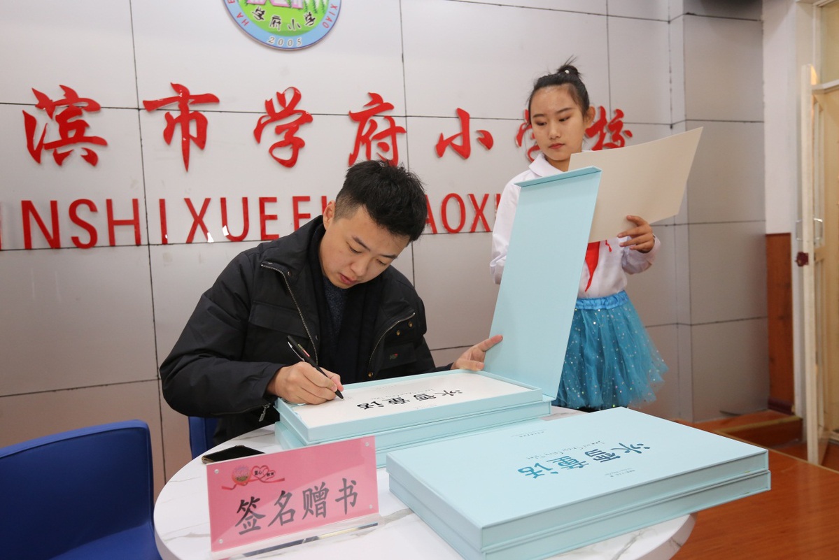 《冰雪童话》作者王子岳向同学们签名赠书