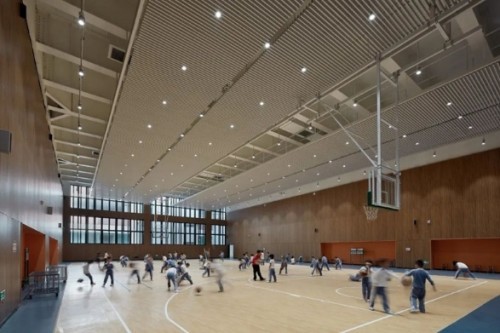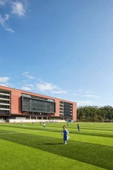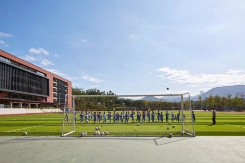 校园生活加入社区生活,为社区注入生机,社区与学校的连接、配套与分时共享,成为宝龙学校未来校园设计的一部分。项目在规划阶段即考虑学校部分配套共享于整个社区,周末学校的游泳馆面向社会开放,最大化利用了公共资源。
