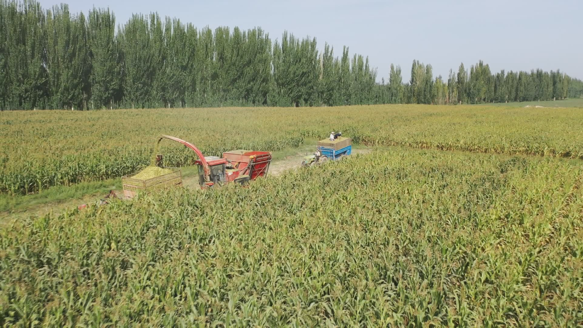 近年来,阿克苏市推广青贮玉米收割机械化技术,发挥大型机械优势,通过农机助力,抢抓农时收获,确保青贮饲料品质,节本增效,解决了青贮玉米机械化收割,牲畜品种改良和高标准设施圈养等工作的推进,为我市农业种植和养殖产业的结构调整奠定坚实的发展基础。