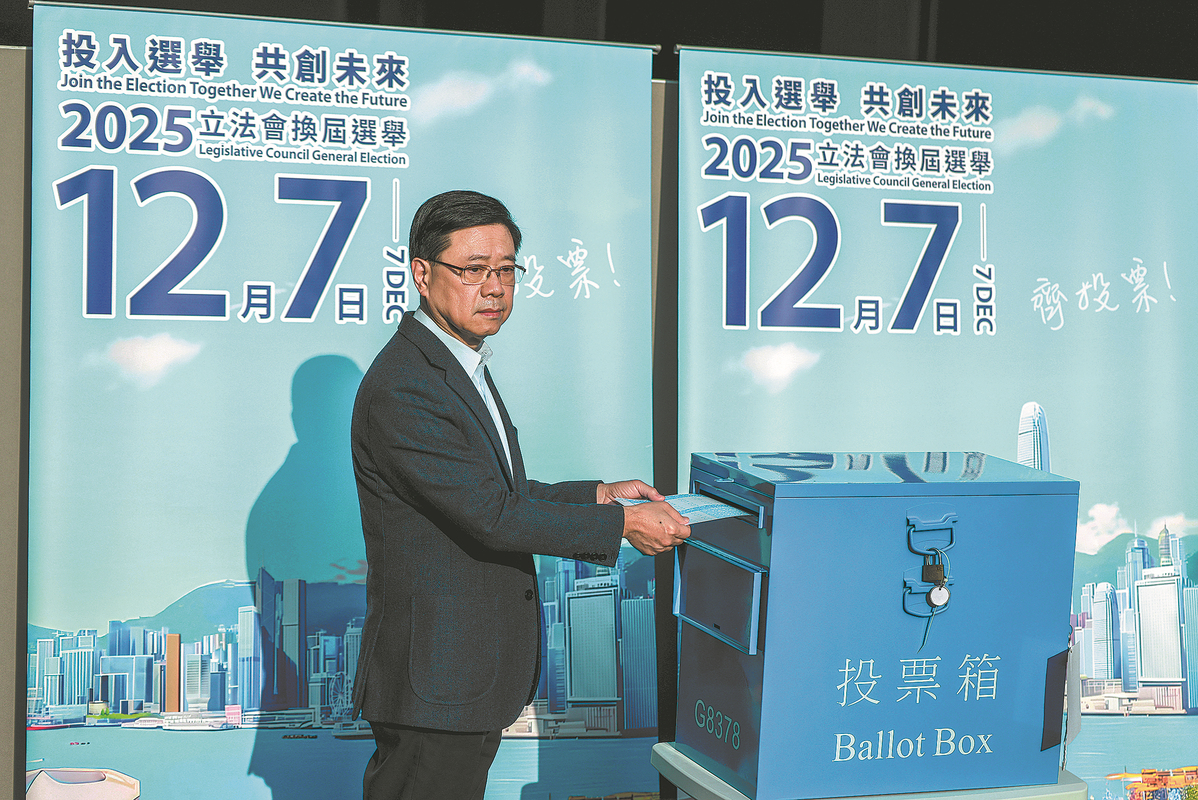 Hong Kong Chief Executive John Lee Ka-chiu casts his ballot on Sunday morning at a polling station during the voting for the election of the new term of the Legislative Council. ANDY CHONG/CHINA DAILY