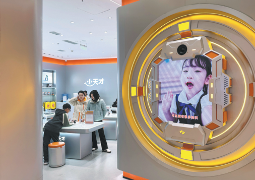 A young customer learns about a product at a children's smartwatch store in Nanjing, Jiangsu province, on Jan 19. PROVIDED TO CHINA DAILY