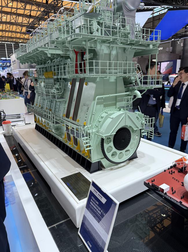 China State Shipbuilding Corporation showcases the latest high-power dual fuel engine at the event. [Photo by Zheng Zheng/chinadaily.com.cn]