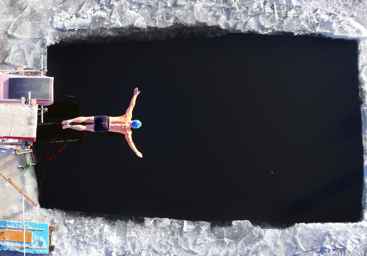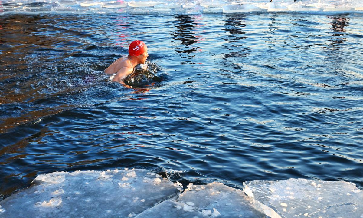 Despite the temperature dropping as low as -20 C recently in Harbin, Heilongjiang province, a group of winter swimmers took an opportunity to dive into the icy Songhua River for an extreme experience.