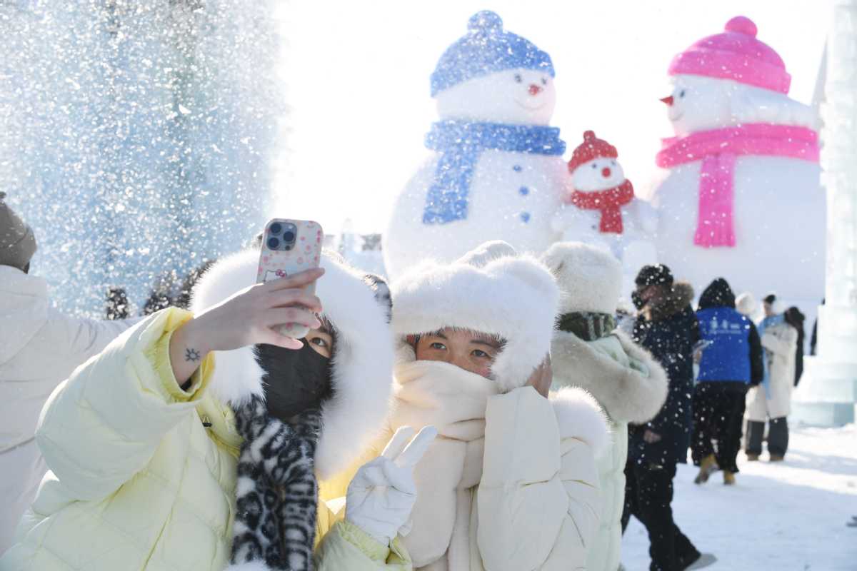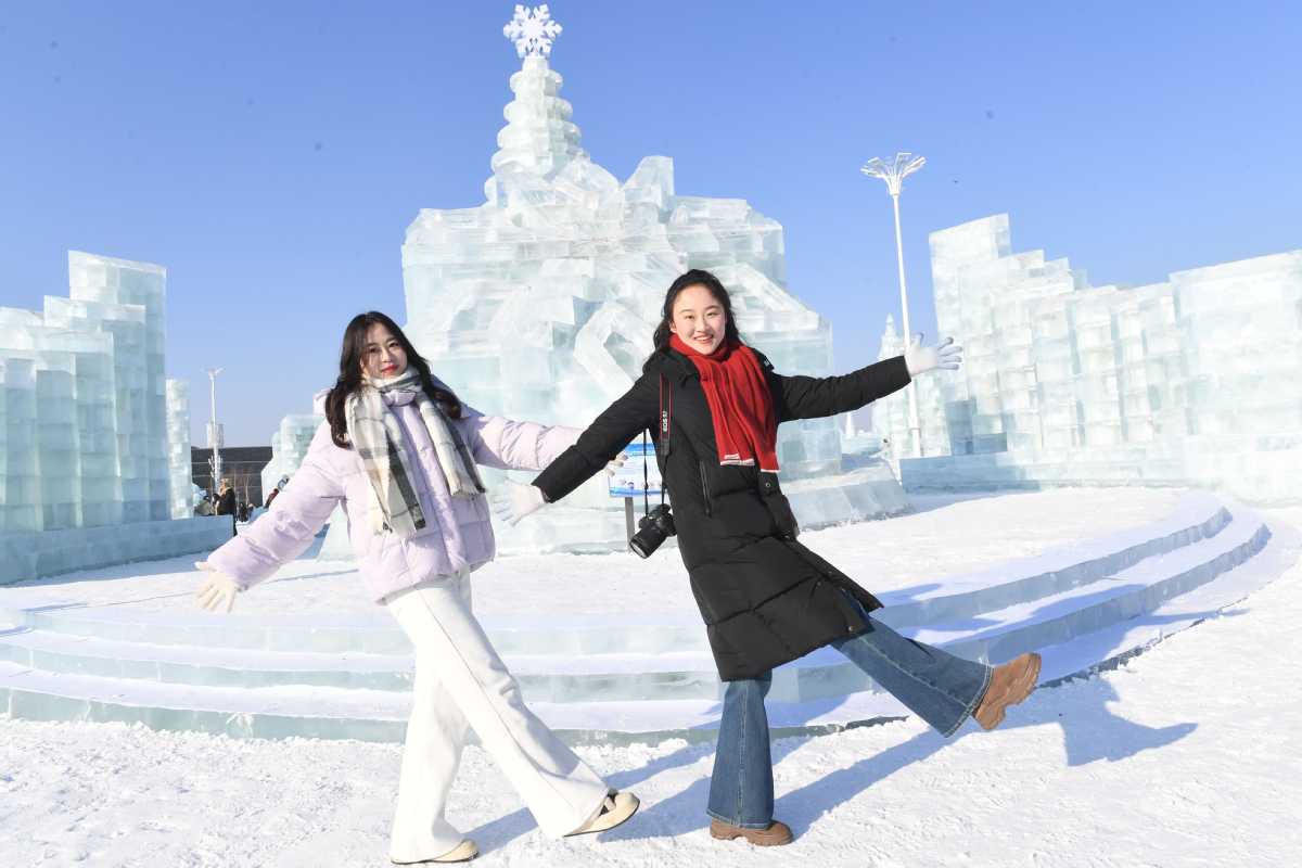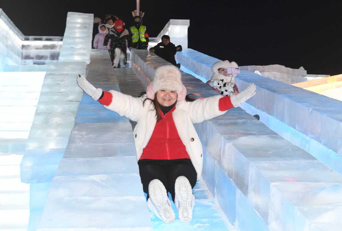 The 27th Harbin Ice and Snow World welcomed its first visitors of the winter season on Wednesday in Harbin, Heilongjiang province. [Photo by Liu Yang/For chinadaily.com.cn]