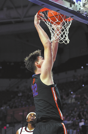 Florida center Olivier Rioux dunks the ball against Saint Francis during an NCAA college game on Wednesday in Gainesville, Florida. AP