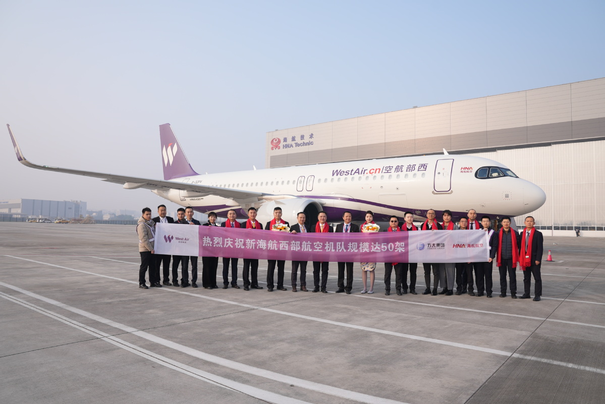 "The expansion of our fleet to 50 aircraft marks a significant leap in West Air's overall operational capabilities, route network coverage, and strategic value," said Wang Ke, chairman of West Air, during a ceremony later in the day.