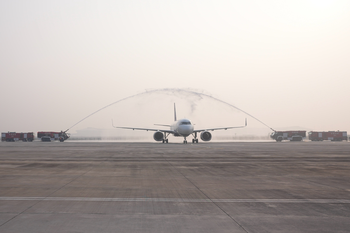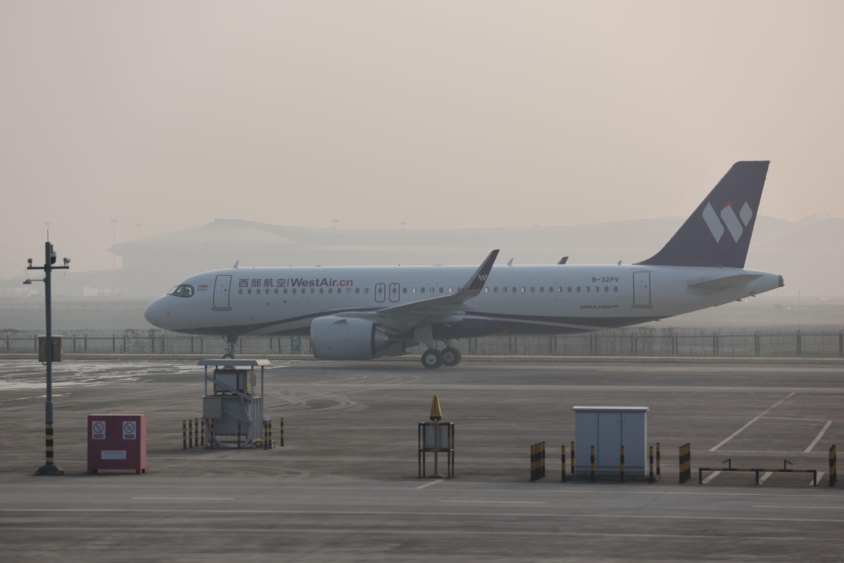 On Thursday morning, West Air marked a milestone with the arrival of its 50th aircraft, an Airbus A320neo (B-32PV), at Chongqing Jiangbei International Airport. This addition elevates the low-cost airline into the ranks of mid-sized carriers and makes it the second such airline headquartered in Chongqing. [Photo by Deng Rui/For chinadaily.com.cn]