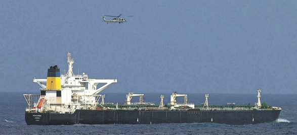Members of the US Coast Guard seize an oil tanker in the southern Caribbean on Saturday. UPI/NEWSCOM