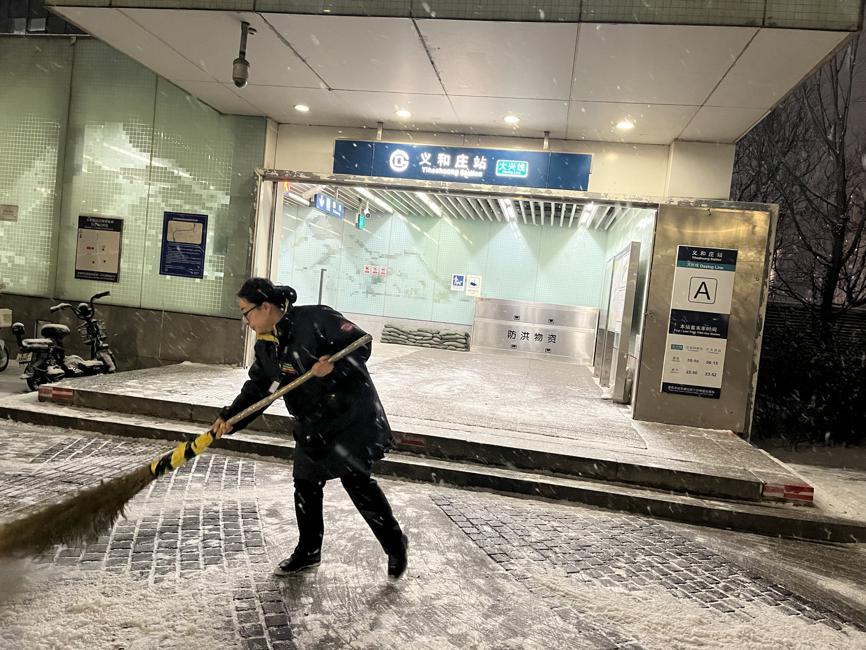 Late on Jan 17, Beijing issued a public initiative calling on government agencies, enterprises, communities and residents to jointly participate in snow and ice removal. The initiative encouraged institutions and businesses to fulfill their responsibilities, communities and volunteers to clear neighborhood roads, and citizens to take part in snow-clearing efforts nearby, while ensuring personal safety.